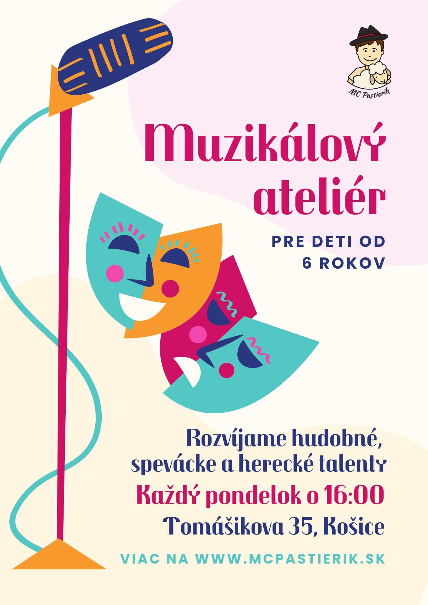 Muzikálový ateliér v Pastieriku je priestor, kde sa tieto talenty môžu rozvíjať naplno – pod umeleckým vedením odborníka a v malej, podnetnej skupine s individuálnym prístupom.