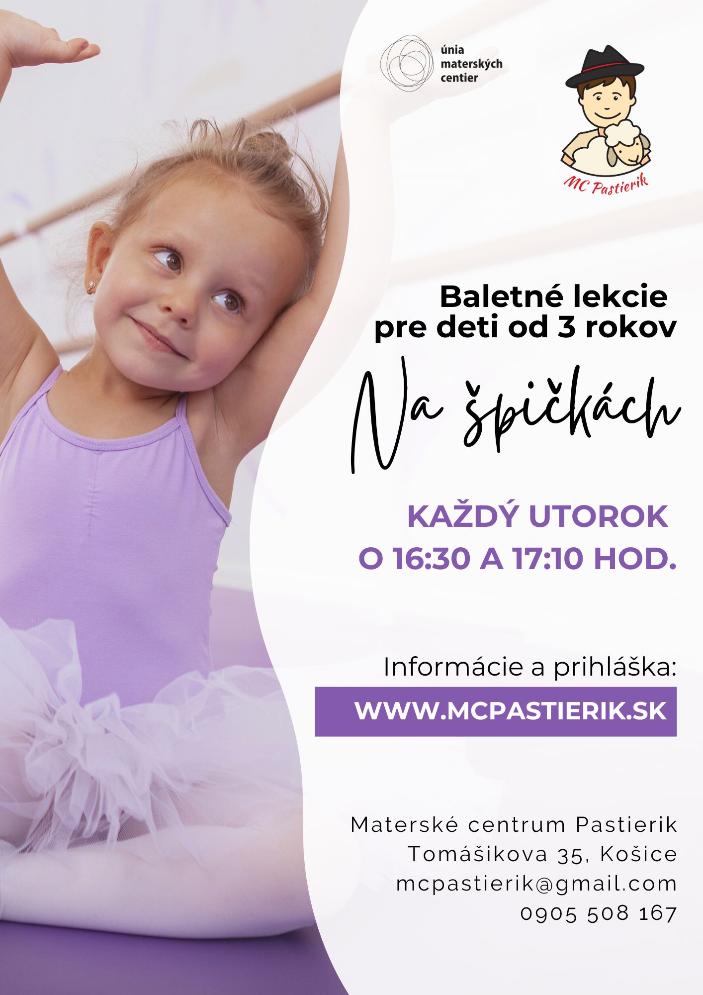Neváhajte a prihláste svoje deti na hodiny detského baletu vedené zábavnou, inšpiratívnou a zážitkovou formou so striedaním dynamickej a strečingovej fázy, ktoré im poskytnú skvelé pohybové základy na celý život.