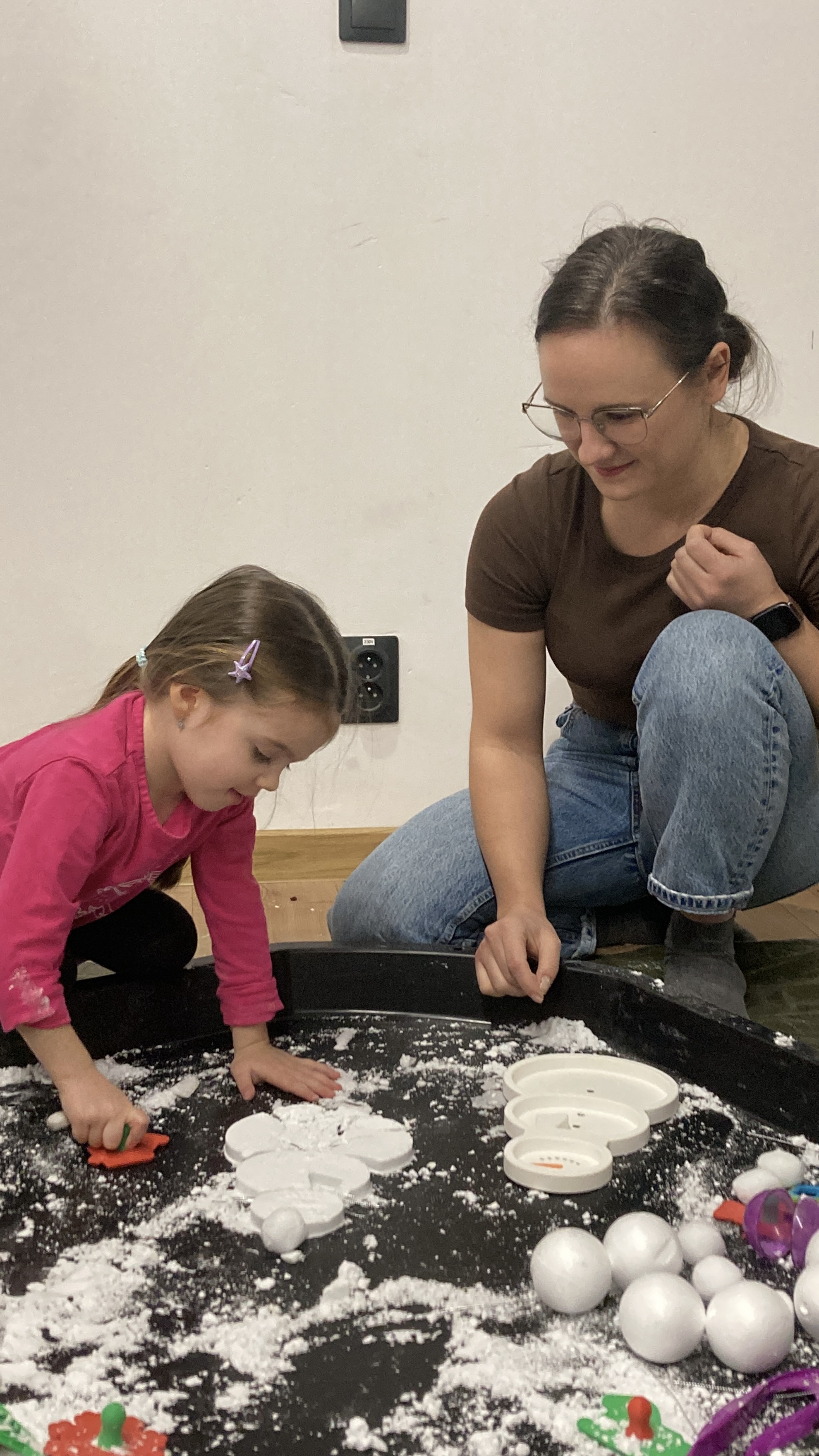 V našom centre používame netradičné, bezpečné a často aj prírodné alebo jedlé materiály, ktoré deti bežne nepoznajú. Práve táto „novosť“ podporuje zvedavosť, tvorivosť a slobodné objavovanie bez strachu z chyby. Každé stretnutie má svoju tému, no v strede pozornosti je vždy dieťa – jeho tempo, záujem a prežívanie.