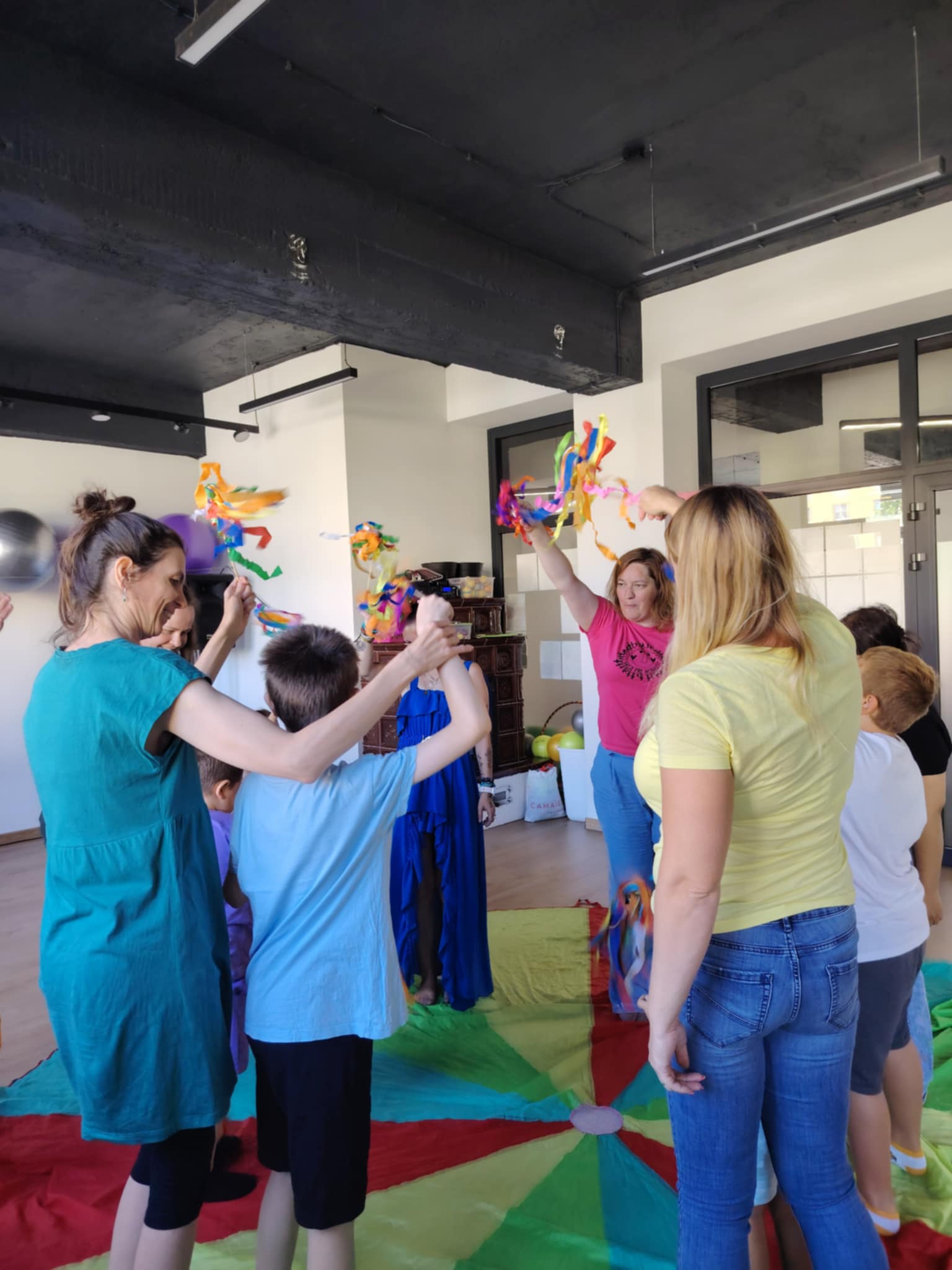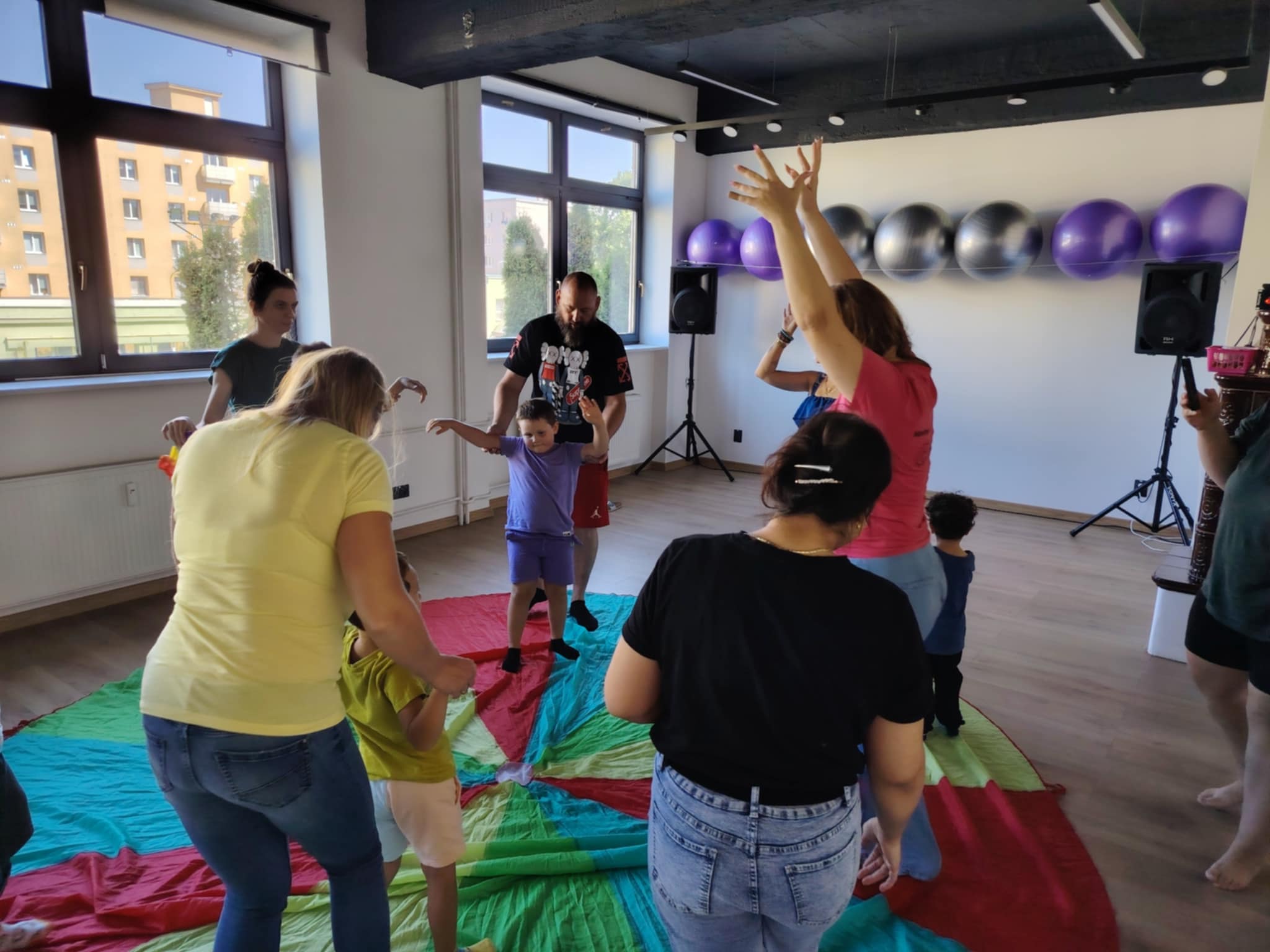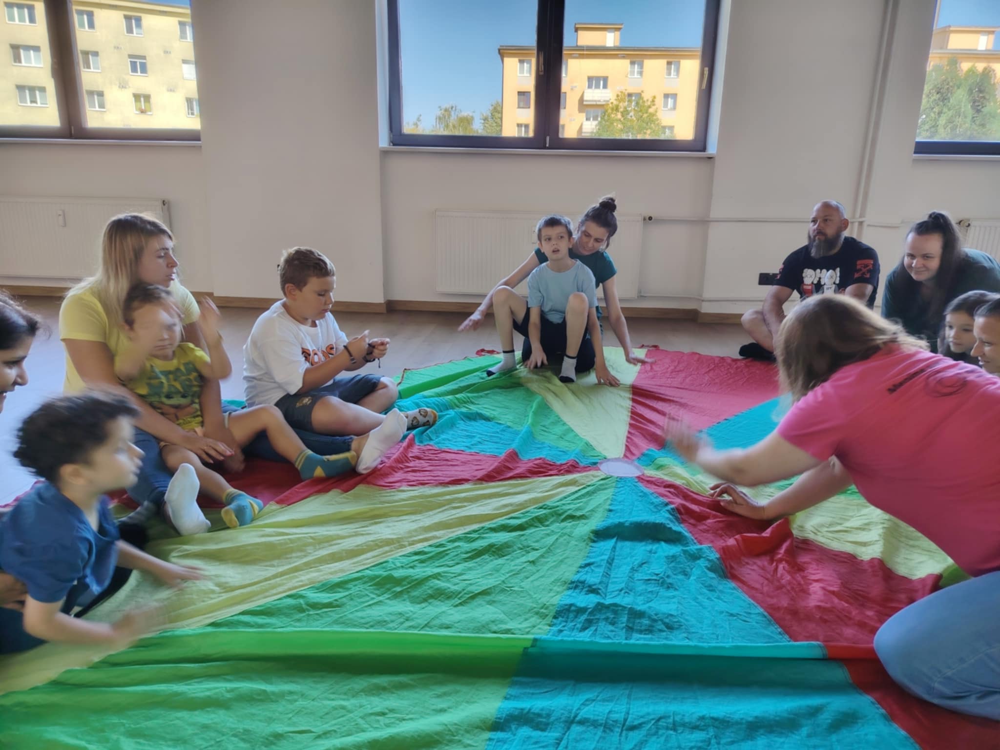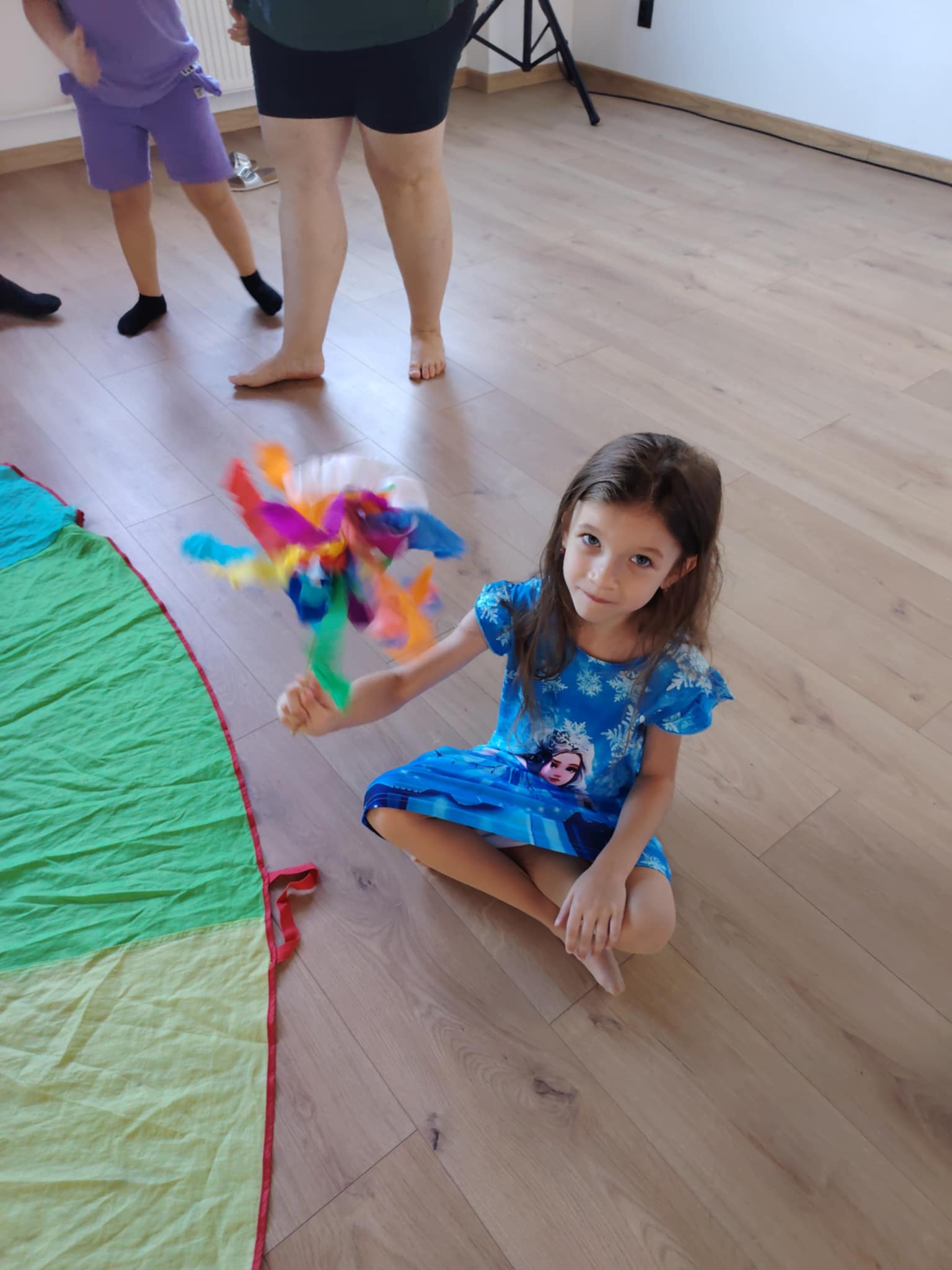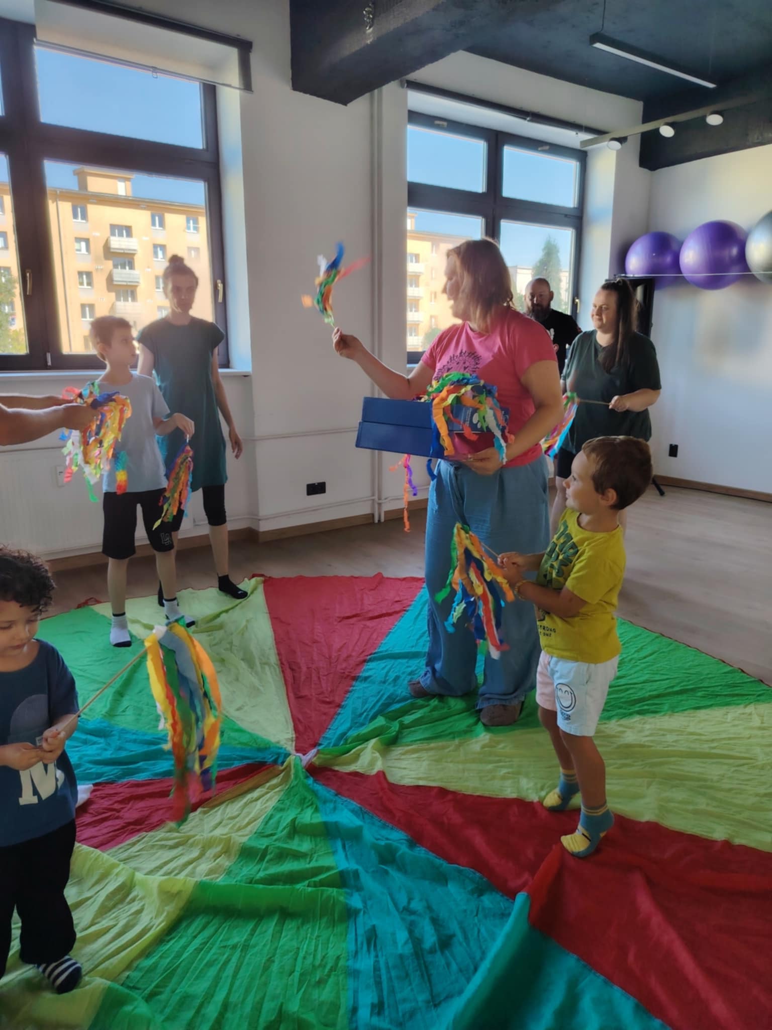 - Pohyb s hudbou – so stužkami, padákom či len bubnovaním na podlahu,