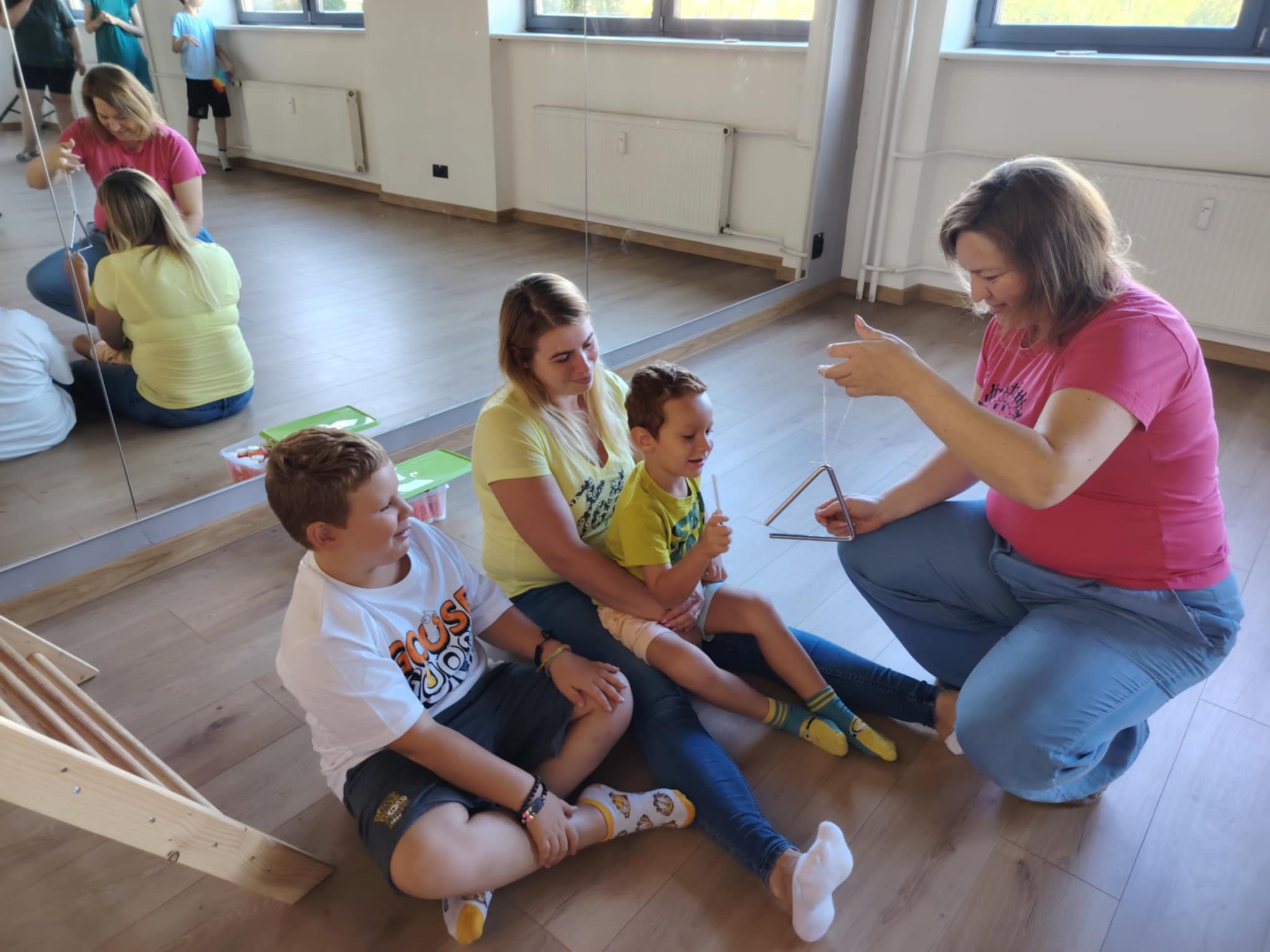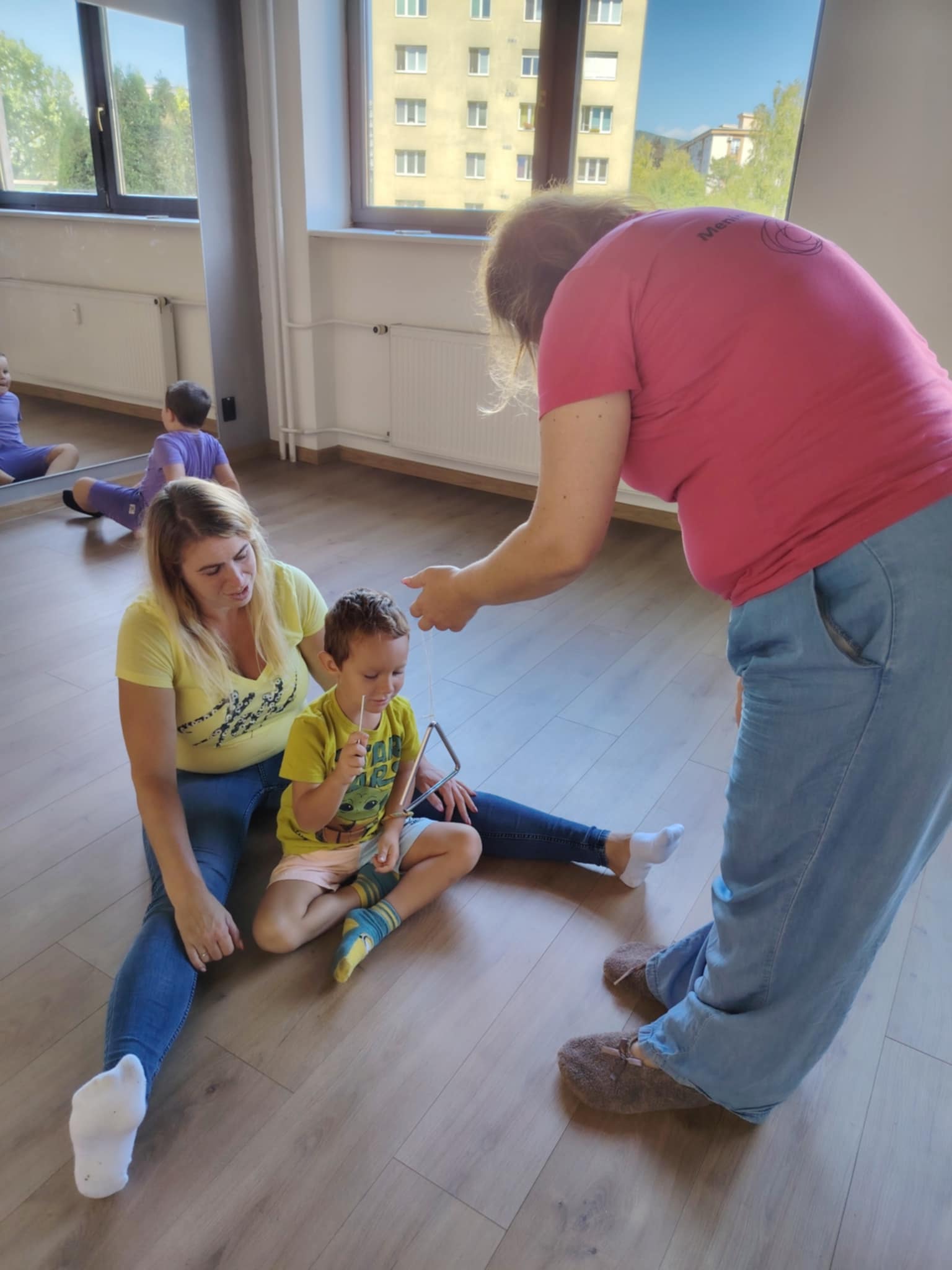 - Jednoduché rytmy na triangel, paličky či zvončeky – deti si ich mohli samy chytiť a objavovať ich zvuk aj vibrácie,