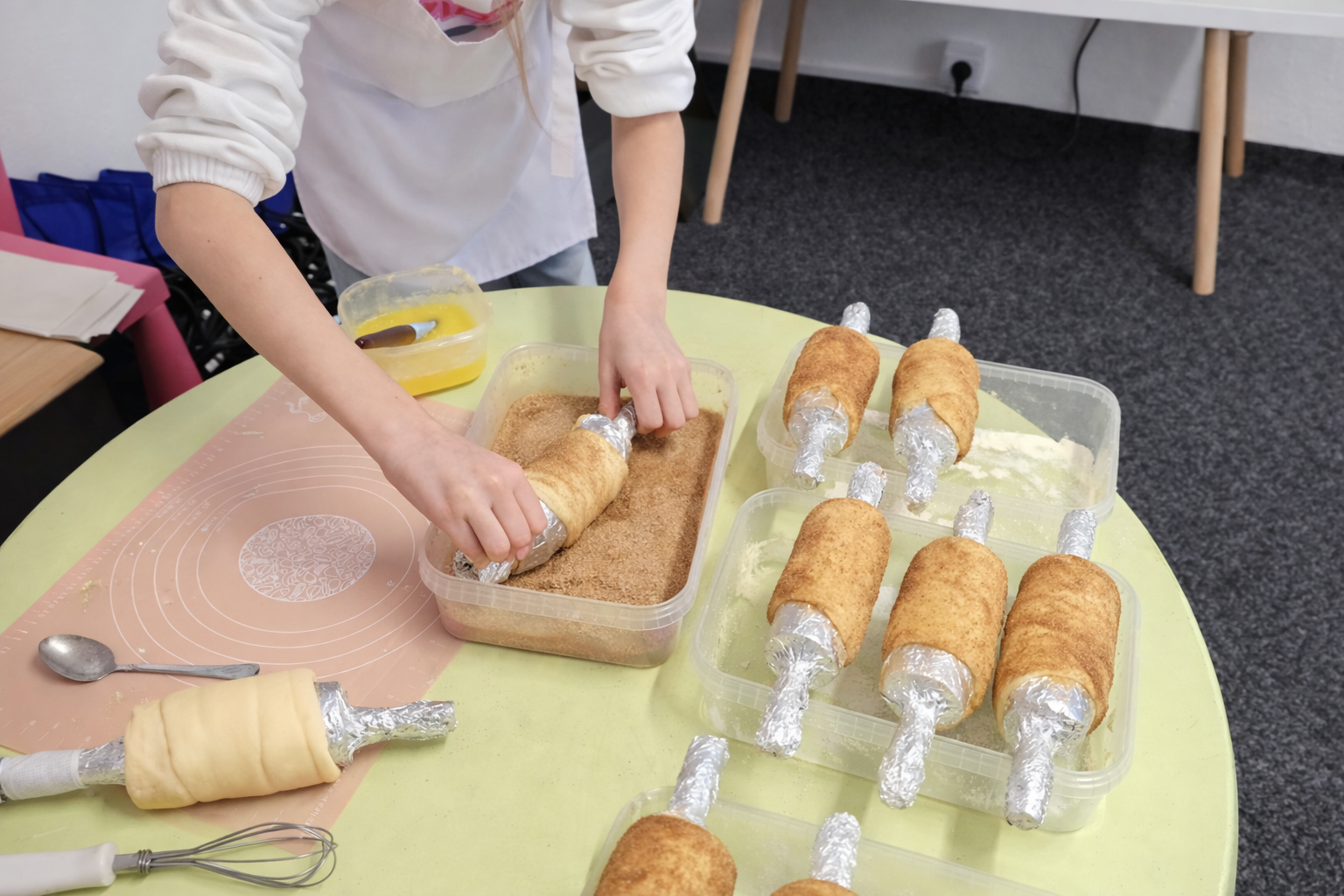 Deti si vlastnoručne pripravia cesto, naučia sa ho správne navinúť, postrážiť pečenie, dochutiť a s hrdosťou si vychutnať vlastný výsledok. Zo stretnutia si odnesú nielen chutný výrobok, ale aj radosť z toho, že to dokázali samy.